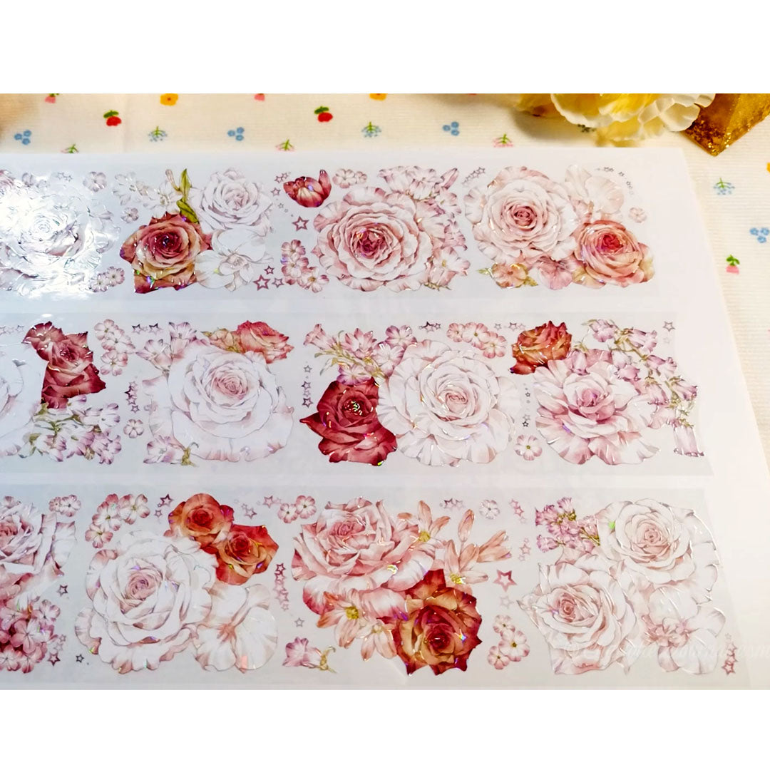 Crystal glossy tapes, shell shiny cover, beautiful pink roses.
