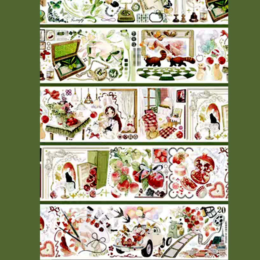 Crystal glossy tapes, shell shiny cover, retro green style.