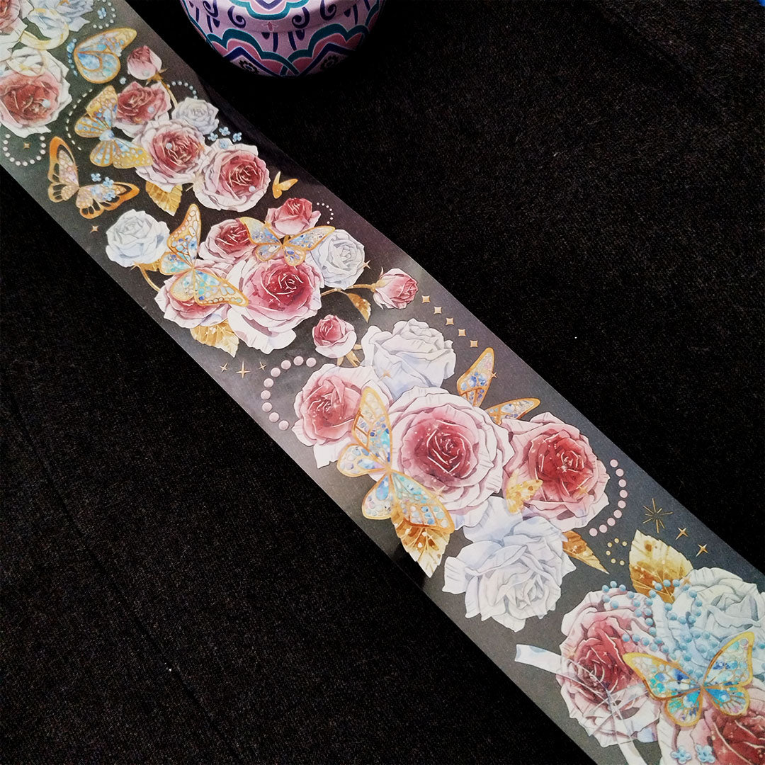 Crystal glossy tapes, shell light cover, beautiful pink flowers.